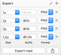 Finally, once our design has been created, we export the images individually in 1x, 2x, and 3x. We click on « make exportable » and on « + » to add sizes. The PNG format will do the job, but make sure that the layer you export has an easily identifiable name for later.