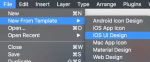 First, we create a new document with the template ” iOS UI design ” (File -> New Form Template -> iOS UI design). There are tons of symbols included and we can already see them on the screen.